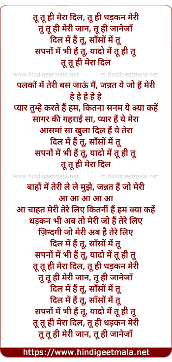 Lyrics of Tu Tu Hi Mera Dil - तू तू ही मेरा दिल, तू ही धड़कन मेरी