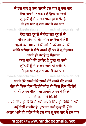 Lyrics of Tu Us Par Mai Is Par - तू उस पार मैं इस पार
