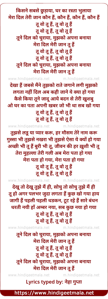Lyrics of Tu Woh Tu Hai - तू वो तू हैं