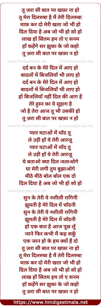 Lyrics of Tu Zara Si Bat Par Khafa Na Ho - तू ज़रा सी बात पर खफ़ा ना हो