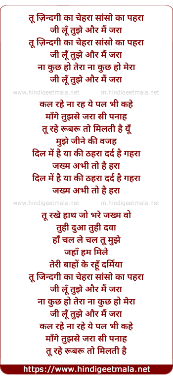 tu zindagi ka chehra sanso ka pehra