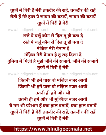 Lyrics of Tufaan Men Ghiri Hain Meri Taqadir Ki Raahein - तूफ़ाँ में घिरी हैं मेरी तक़दीर की राहें