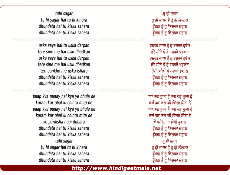 Lyrics of Tu Hi Sagar Tu Hi Kinara, Dhudhta Hai Tu Kiska Sahara - तू ही सागर है तू ही किनारा, ढूँढता है तू किसका सहारा