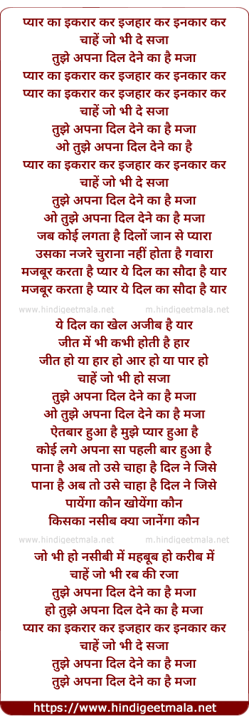 Lyrics of Tujhe Apna Dil Dene Kaa Hai Maja - प्यार का इकरार कर इजहार कर इनकार कर