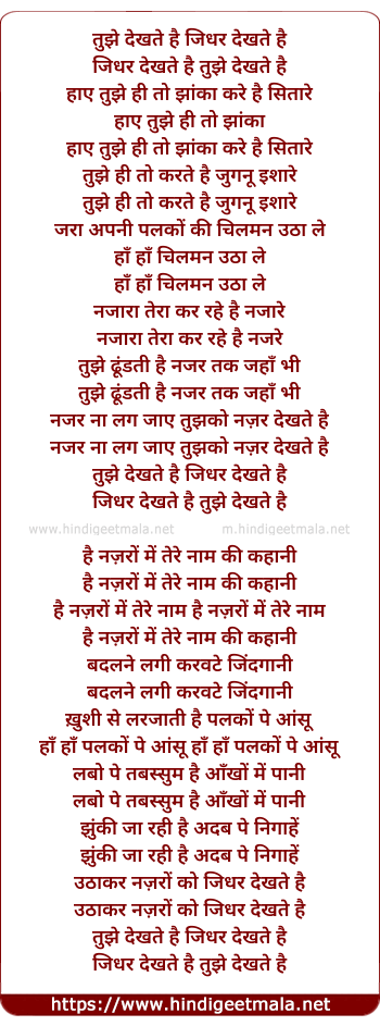 Lyrics of Tujhe Dekhte Hai Jidhar Dekhte Hai - तुझे देखते है जिधर देखते है