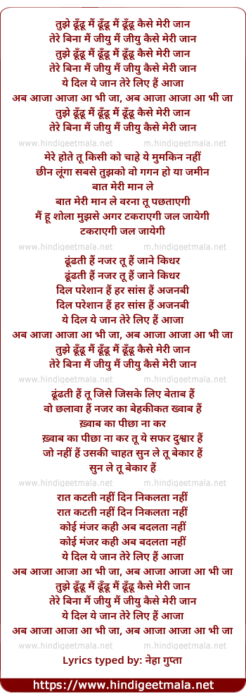 Lyrics of Tujhe Dhundhu Mai Dhundhu Kaise Meree Jaan - तुझे ढूँढू मैं ढूँढू कैसे मेरी जान