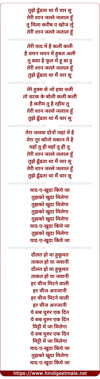 Lyrics of Tujhe Dhundta Tha Mai - तुझे ढूँढता था मैं चार सु