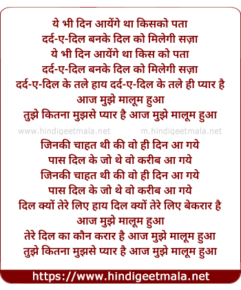 tere dil ka kaun karaar hai aaj mujhe maaloom hua