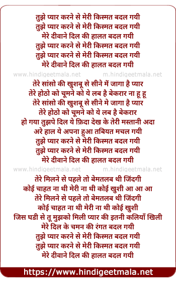 Lyrics of Tujhe Pyaar Karne Se Meri Kismat Badal Gayi - तुझे प्यार करने से मेरी किस्मत बदल गयी