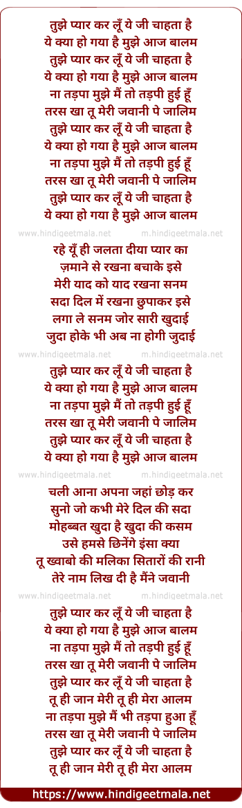 Lyrics of Tujhe Pyar Karlu Ye Ji Chahta Hai - तुझे प्यार कर लूँ ये जी चाहता है