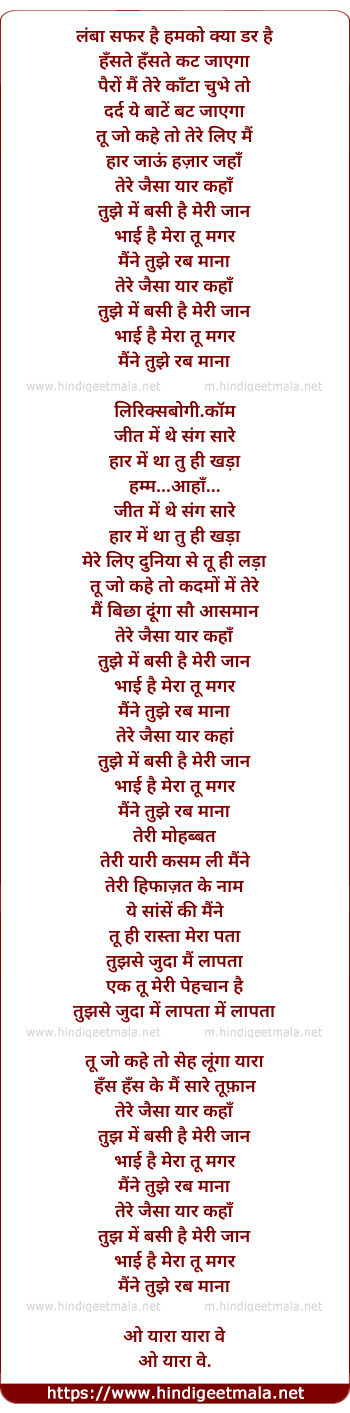 ho yara yara ve lamba safar hai humko kya dar hai