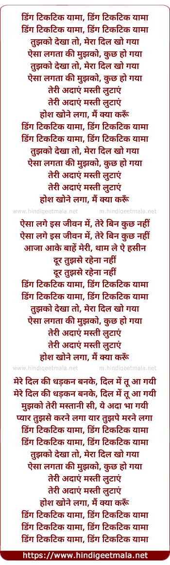 Poetic Translation - Lyrics of Tujhko Dekha To Mera Dil Kho Gya - डिंग टिकटिक यामा, डिंग टिकटिक यामा