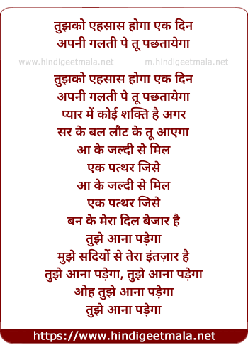 Lyrics of Tujhko Ehsas Hoga Ek Din - तुझको एहसास होगा एक दिन