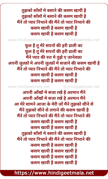Lyrics of Tujhko Sanso Me Basane Ki Kasam Khai Hai - तुझको साँसों मे बसाने की कसम खायी है
