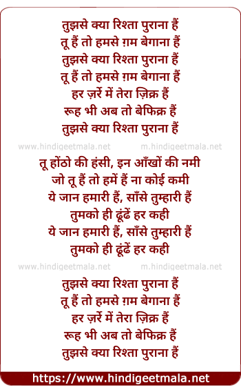 Lyrics of Tujhse - तुझसे क्या रिश्ता पुराना हैं