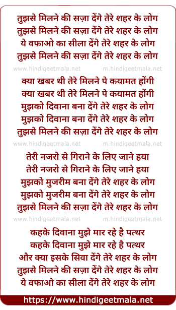 Lyrics of Tujhse Milne Ki Sazaa Denge - तुझसे मिलने की सज़ा देंगे