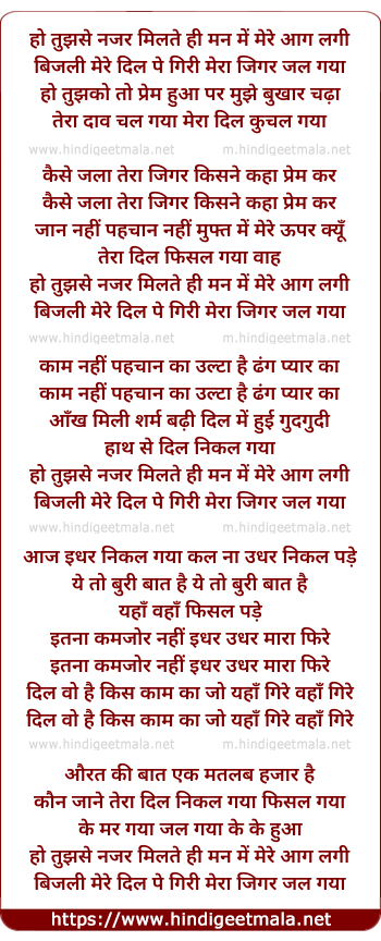 Poetic Translation - Lyrics of Tujhse Nazar Milte Hi - तुझसे नजर मिलते ही