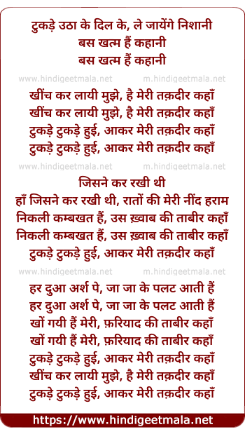 Lyrics of Tukde Utha Ke Dil Ke - टुकड़े उठा के दिल के, ले जायेंगे निशानी