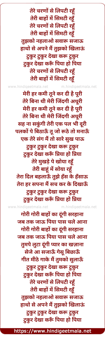 Lyrics of Tukur Tukur Dekha Karu - टुकुर टुकुर देखा करू