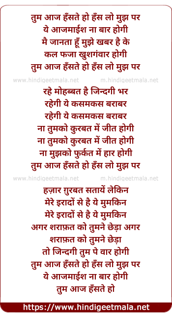 Lyrics of Tum Aaj Hanste Ho Hans Lo - तुम आज हँसते हो हँस लो मुझ पर