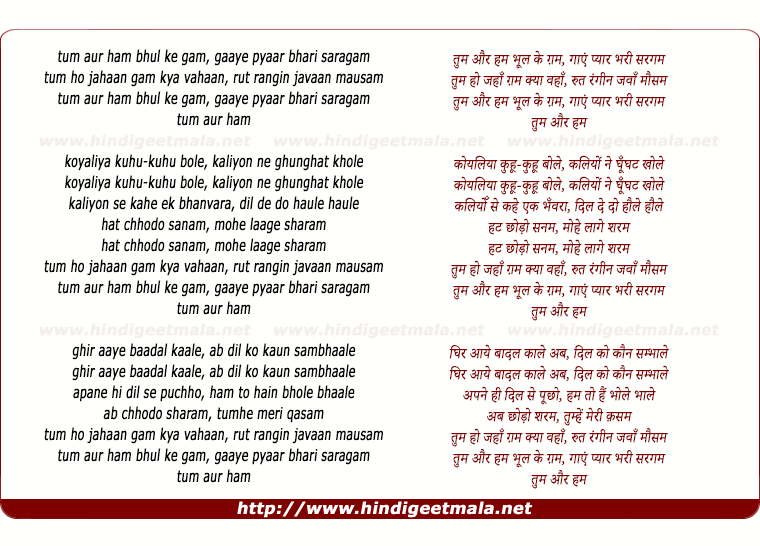 Lyrics of Tum Aur Ham Bhul Ke Gam - तुम और हम भूल के ग़म