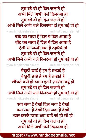 Lyrics of Tum Bade Wo Ho Dil Jalate Ho - तुम बड़े वो हो दिल जलाते हो