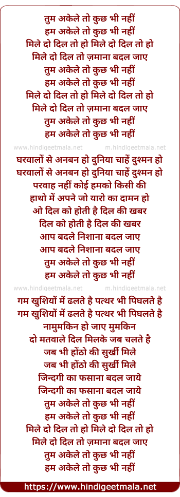 Lyrics of Tum Akele To Kuchh Bhi Nahi - तुम अकेले तो कुछ भी नहीं