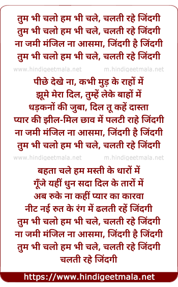 Lyrics of Tum Bhi Chalo Hum Bhi Chale - तुम भी चलो हम भी चले