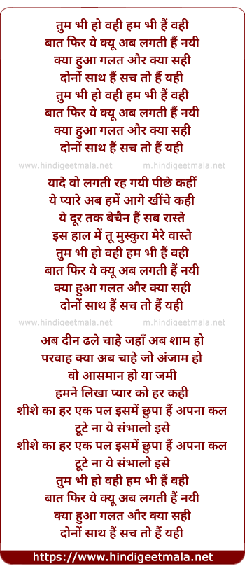 Lyrics of Tum Bhi Ho Wahi (Remix) - तुम भी हो वही हम भी हैं वही