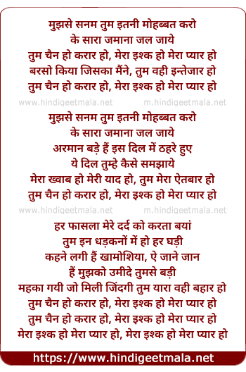 tum chain ho karar ho, mera ishq ho mera pyar ho