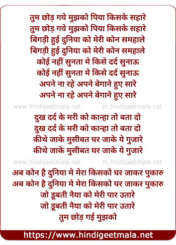Lyrics of Tum Chod Gaye Mujhko Piya - तुम छोड़ गये मुझको पिया