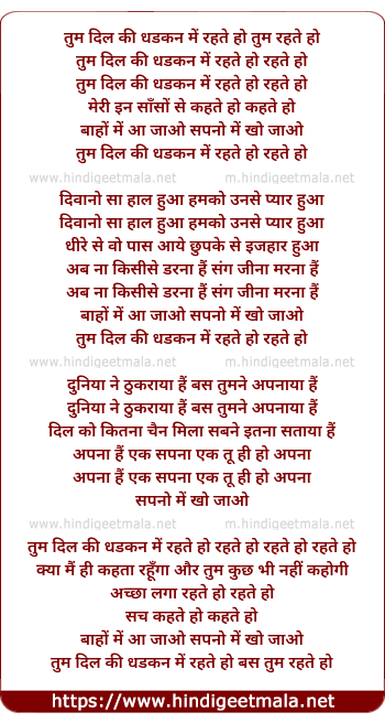 Lyrics of Tum Dil Kee Dhadkan Me Rehte Ho - तुम दिल की धडकन में रहते हो रहते हो