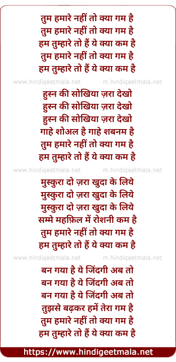 Lyrics of Tum Hamare Nahi To Kya Gham Hai - तुम हमारे नहीं तो क्या गम है