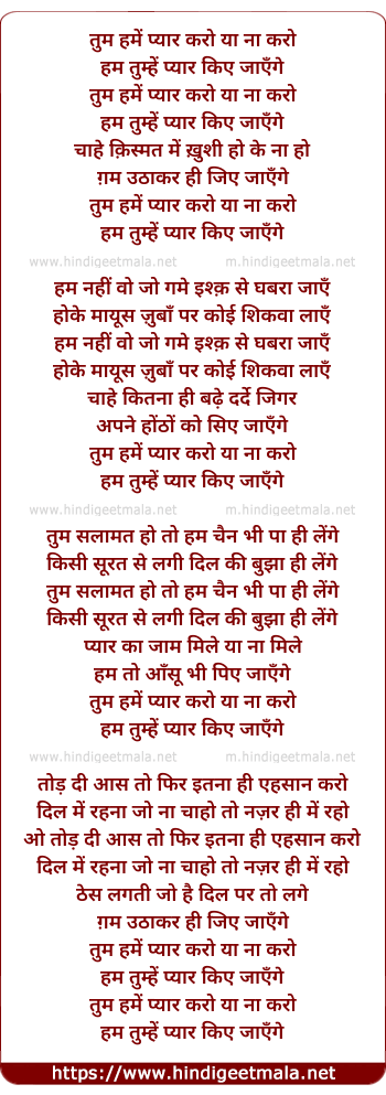 Lyrics of Tum Hame Pyar Karo Ya Naa Karo - तुम हमें प्यार करो या ना करो