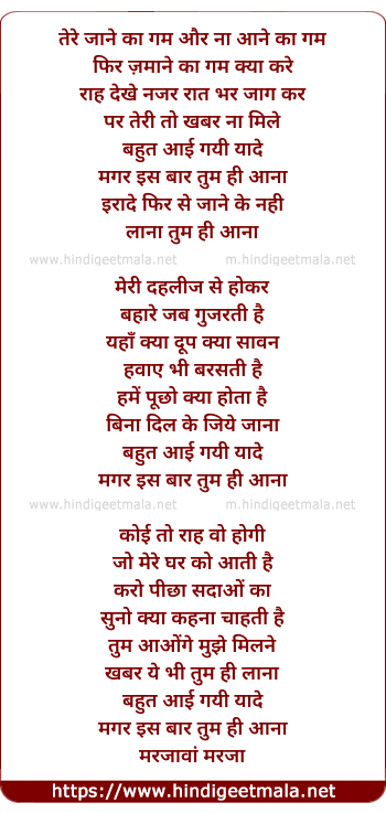 tere jane ka gham aur na aane ka gham
