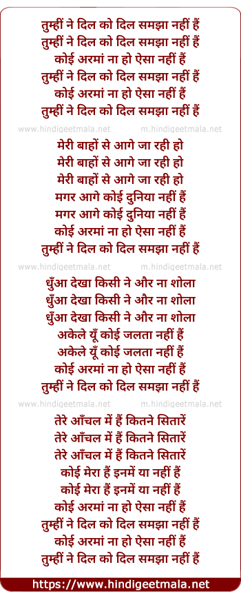 Lyrics of Tum Hi Ne Dil Ko Dil - तुम्हीं ने दिल को दिल समझा नहीं हैं