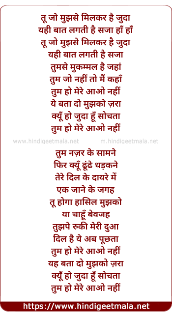 Lyrics of Tum Ho Mere - तुम हो मेरे