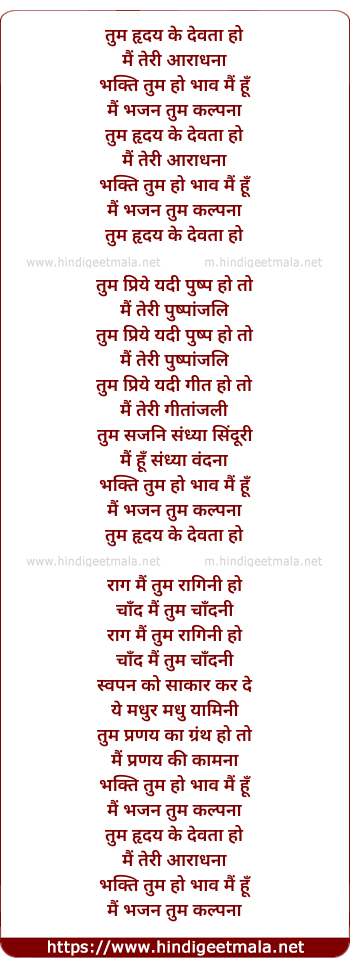 Lyrics of Tum Hriday Ke Devta Ho - तुम हृदय के देवता हो