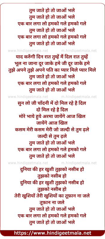 Lyrics of Tum Jaate Ho Toh Jao Bhale - तुम जाते हो तो जाओं भले