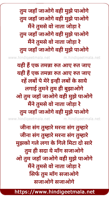 Lyrics of Tum Jaha Jaaoge - तुम जहाँ जाओगे