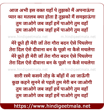 Lyrics of Tum Jaoge Jab Jaha Hume Paoge - तुम जाओगे जब जहाँ हमें पाओगे