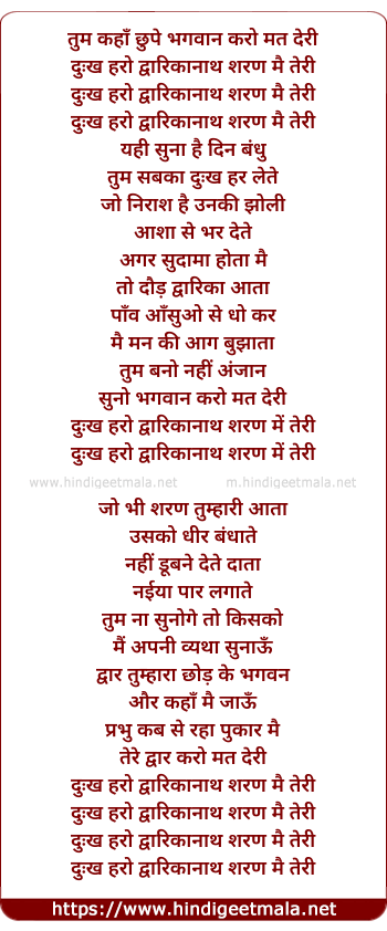 Lyrics of Tum Kahaan Chhupe Ho Bhagwan - तुम कहाँ छुपे भगवान करो मत देरी