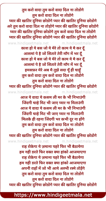 Lyrics of Tum Karo Vada Dil Na Todoge - तुम करो वादा दिल ना तोड़ोगे
