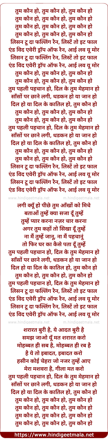 tum kaun ho, tum kaun ho, tum kaun ho