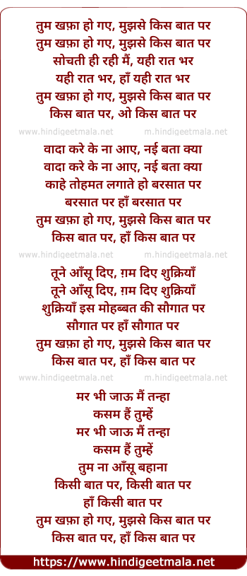 Lyrics of Tum Khafa Ho Gae - तुम खफ़ा हो गए, मुझसे किस बात पर