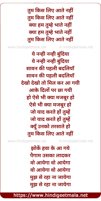 Lyrics of Tum Kis Liye Aate Nahi - तुम किस लिए आते नहीं