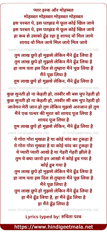Lyrics of Tum Laakh Chhupe Ho Mujhase Lekin - तुम लाख छुपे हो मुझसे लेकिन
