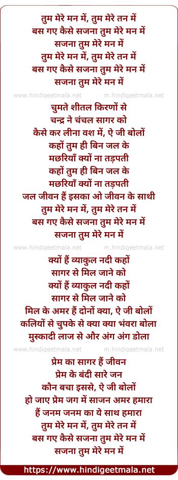 Lyrics of Tum Mere Man Me Bas Gaye - तुम मेरे मन में, तुम मेरे तन में