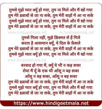 Lyrics of Tum Meri Baaho Mein Aa Na Sake - तुम मेरी बाहों में आ ना सके