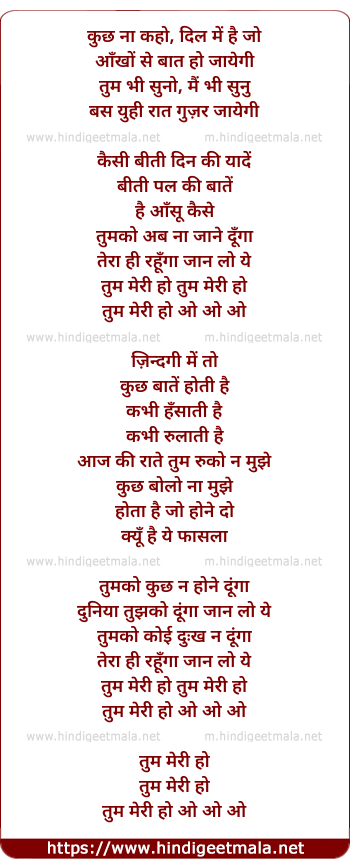 Lyrics of Tum Meri Ho - कुछ ना कहो, दिल में है जो